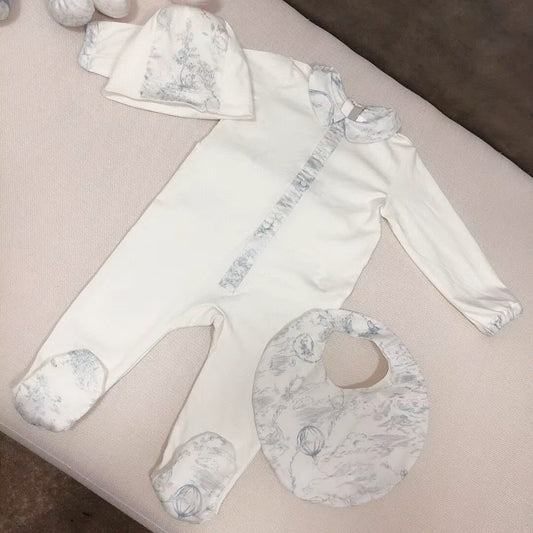 Combinaison bébé à manches longues en pur coton- Bleu